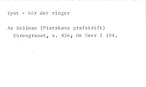 Tyst - hör det ringer //// Av Bellman '(Platskans grafskrift) Ehrengranat, s. 456; De Geer I 194.