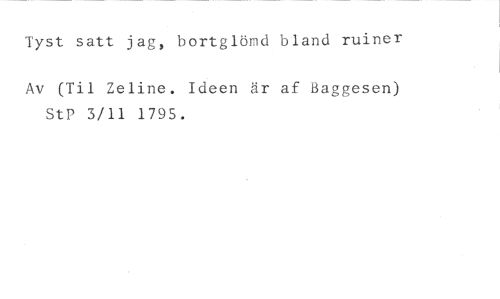 Tyst satt jag, bortglömd bland ruiner //// Av (Til Zeline. Ideen är af Baggesen) StP 3/11 1795.