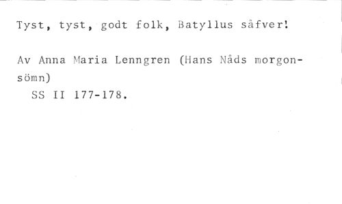 Tyst, tyst, godt folk, Batyllus såfver! //// Av Anna Maria Lenngren (Hans Nåds morgonsömn) //// SS II 177-178.