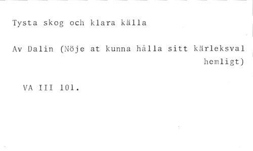 Tysta skog och klara källa //// Av Dalin (Nöje at kunna hålla sitt kärleksval //// hemligt) //// VA III 101.