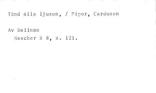 Tänd alla ljusen, / Pipor, Cardusen //// Av Bellman //// Nescher B 8, s. 121.
