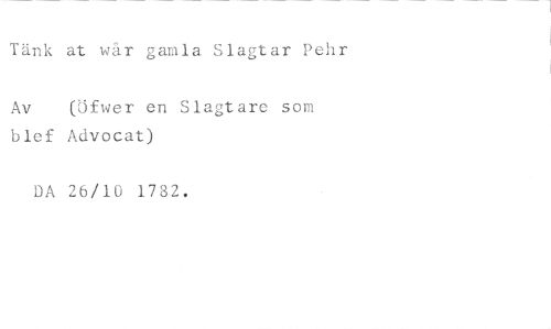 Tänk at wir gamla Slagtar Pehr //// Av (Öfwer en Slagtare som //// blef Advocat) //// DA 26/10 1782.