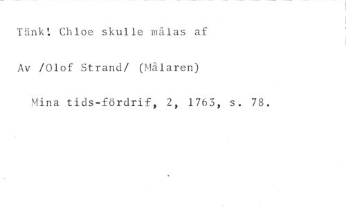 Tänkt Chloe skulle målas af Av /Olof Strand/ (Målaren) //// Mina tids-fördrif, 2, 1763, s. 78.
