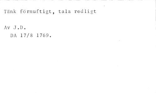 Tänk förnuftigt, tala redligt //// Av J.D. //// DA 17/8 1769.