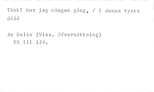 Tänk: hur jag mången gång, / I denna tysta däld //// Av Dalin (Visa. Öfversättning) VA III 124.