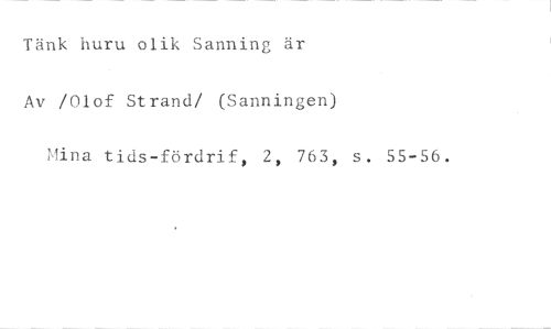 Tänk huru olik Sanning är //// Av /Olof Strand/ (Sanningen) //// Mina tids-fördrif, 2, 763, s. 55-56.