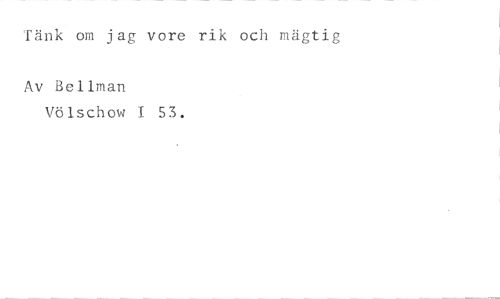 Tänk om jag vore rik och mägtig //// Av Bellman //// Völschow I 53.