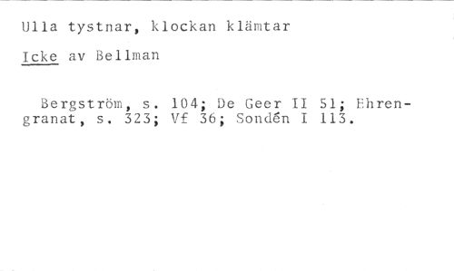 Ulla tystnar, klockan klämtar Icke av Bellman //// Bergström, s. 104; De Geer II 51; Ehrengranat, s. 323; Vf 36; Sondfin I 113.