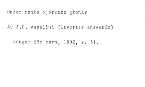 Under ranka björkars grenar //// Av J.E. Angelini (Utvertes anseende) Sånger för barn, 1802, s. 31.