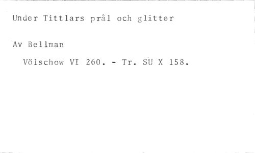 Under Tittlars prål och glitter //// Av Bellman //// Völschow VI 260. - Tr. SU X 158.
