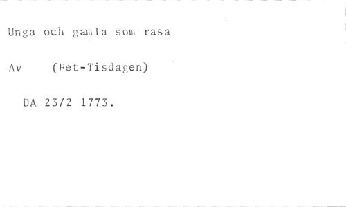 Unga och gamla som rasa //// Av (Fet-Tisdagen) //// DA 23/2 1773.