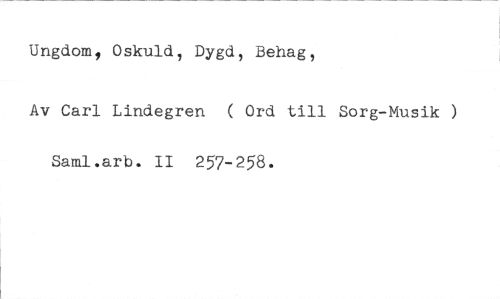 Ungdom, Oskuld, Dygd, Behag, //// Av Carl Lindegren ( Ord till Sorg-Musik ) Saml.arb. II 257-258.