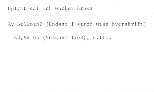 Uplyst sal och wacker brasa //// Av Bellman? (Endast 1 strof utan överskrift) KB,Vs 66 (Nescher 1768), s.111.