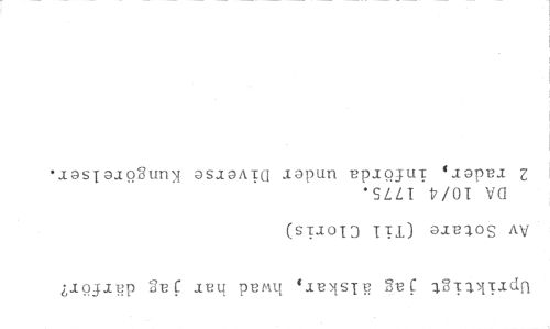 Upriktigt jag älskar, hwad har jag därför? Av Sotare (Til Claris) //// DA 10/4 1775. //// 2 rader, införda under Diverse Kungörelser.