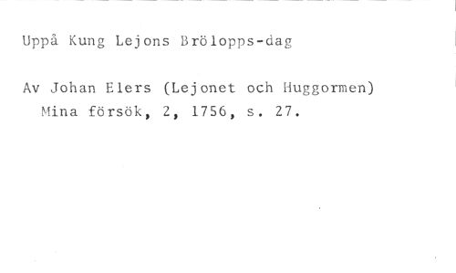 Uppå Kung Lejons Brölopps-dag //// Av Johan Elers (Lejonet och Huggormen) Mina försök, 2, 1756, s. 27.