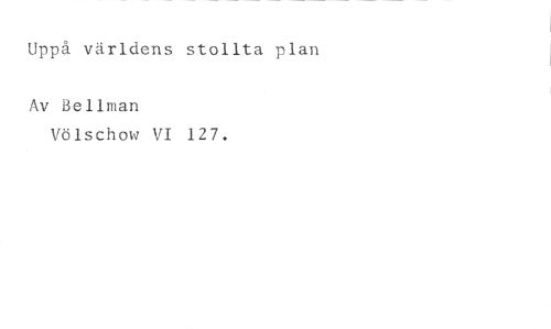 Uppå världens stollta plan //// Av Bellman //// Völschow VI 127.