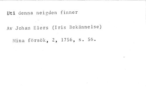 Uti denna neigden finner //// Av Johan Elers (Iris Bekännelse) Mina försök, 2, 1756, s. 56.