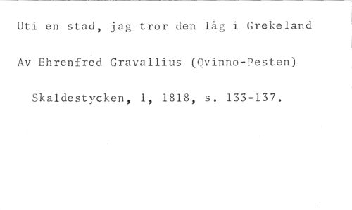 Uti en stad, jag tror den låg i Grekeland //// Av Ehrenfred Gravallius (flvinno-Pesten) //// Skaldestycken, i, 1818, s. 133-137.