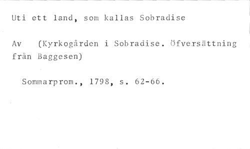 Uti ett land, som kallas Sobradise //// Av (Kyrkogården i Sobradise. Öfversättning //// från Baggesen) //// Sommarprom., 1798, s. 62-66.