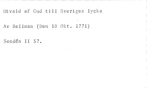 Utvald af Gud till Sveriges lycka //// Av Bellman (Den 10 Okt. 1771) //// Sondgn II 57.