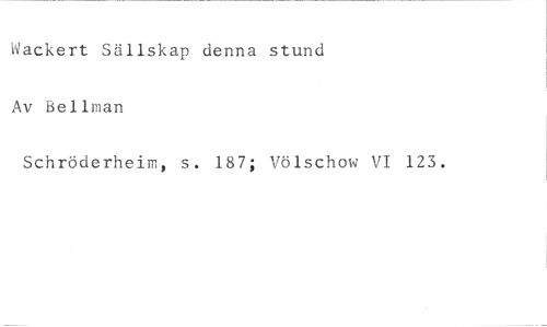 Wackert Sällskap denna stund //// Av Bellman //// Schröderheim, s. 187; Völschow VI 123.
