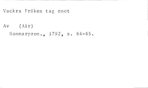 Vackra Fröken tag emot //// Av (Air) //// Sommarprom., 1792, s. 84-85.