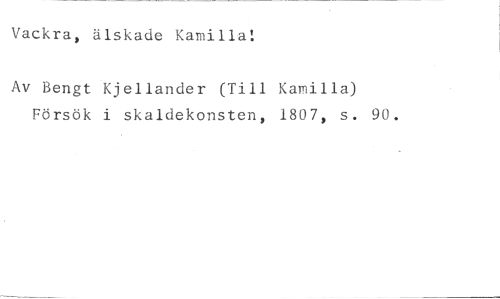 Vackra, älskade Kamilla! //// Av Bengt Kjellander (Till Kamilla) Försök i skaldekonsten, 1807, s. 90.