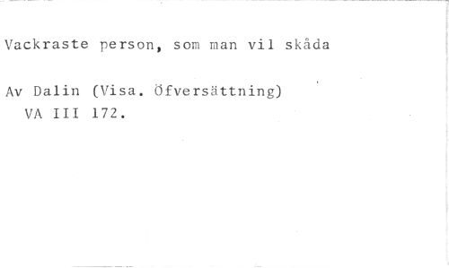 Vackraste person, som man vii skåda //// Av Dalin (Visa. Öfversättning) VA III 172.