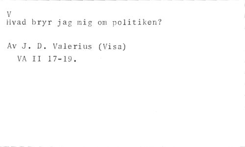 V //// Hvad bryr jag mig om politiken? //// Av J. D. Valerius (Visa) VA II 17-19.