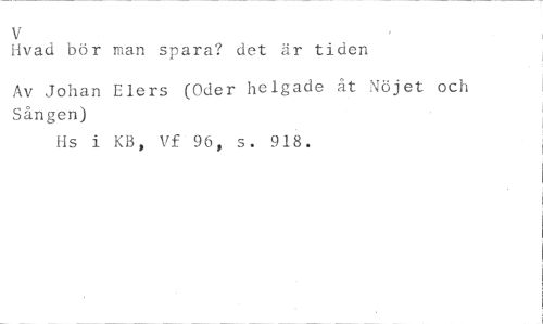 V //// Hvad bör man spara? det är tiden //// Av Johan Elers (Oder helgade åt Nöjet och Sången) //// Hs i KB, Vf 96, s. 918.
