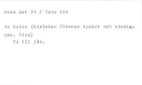 Hvad det är / Vara kär //// Av Dalin (Kärleken förenar tycket och vänska- //// pen. Visa) //// VA III 184.