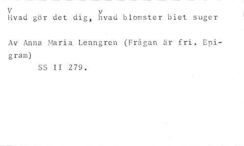 V //// Evad gör det dig, hvad blomster biet suger //// Av Anna Maria Lenngren (Frågan är fri. Epigram) //// SS II 279.