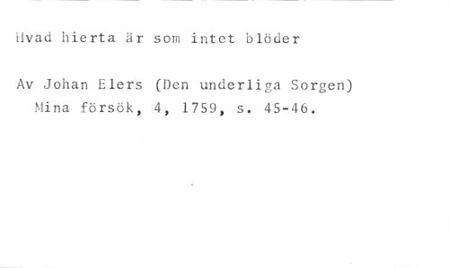 Hvad hierta är som intet blöder //// Av Johan Elers (Den underliga Sorgen) Mina försök, 4, 1759, s. 45-46.