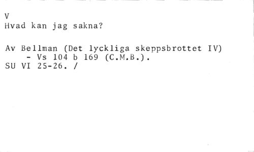 V //// livad kan jag sakna? //// Av Bellman (Det lyckliga skeppsbrottet IV) - Vs 104 b 169 (C.M.B.). SU VI 25-26. //// /