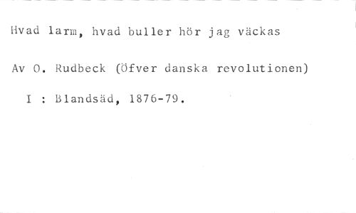 livad larm, hvad buller hör jag väckas //// Av 0. Rudbeck (Öfver danska revolutionen) I : Blandsäd, 1876-79.