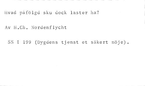 Uvad Ofölgd sku dock laster ha? Av H.Ch. Nordenflycht //// SS I 199 (Dygdens tjenst et säkert nöje).