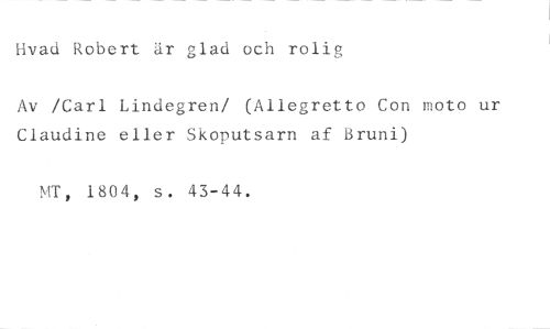 Fivad Robert är glad och rolig //// Av /Carl Lindegren/ (Allegretto Con moto ur Claudine eller Skoputsarn af Bruni) //// \q, 1804, s. 43-44.