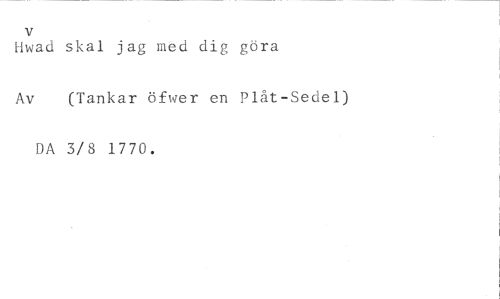 v //// Hwad skal jag med dig göra //// Av (Tankar öfwer en Plåt-Sedel) //// DA 3/8 1770.