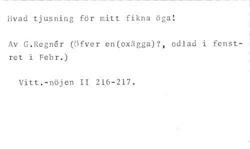 Hvad tjusning för mitt fikna öga: //// Av G.Regn6r (öfver en(oxägga)?, odlad i fenstret i Febr.) //// Vitt.-nöjen II 216-217.
