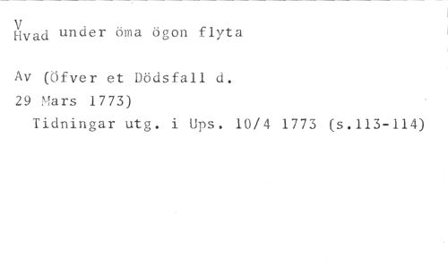 livad under öma ögon flyta //// Av (Öfver et Dödsfall d. 29 Mars 1773) //// Tidningar utg. i Ups. 10/4 1773 (s.113-114)