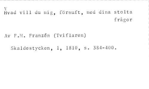 Hvad vill du mig, förnuft, med dina stolta //// frågor //// Av F.M. Franzén (Tviflaren) //// Skaldestycken, 1, 1810, s. 384-400.