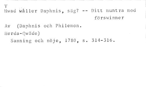V //// livad wåller Daphnis, säg? -- Ditt muntra mod //// försvinner //// Av (Daphnis och Phi1emon. //// herda-Qwäde) //// Sanning och nöje, 1780, s. 314-316.