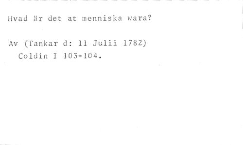 Hvad är det at menniska wara? //// Av (Tankar d: 11 Julii 1782) Coldin I 103-104.