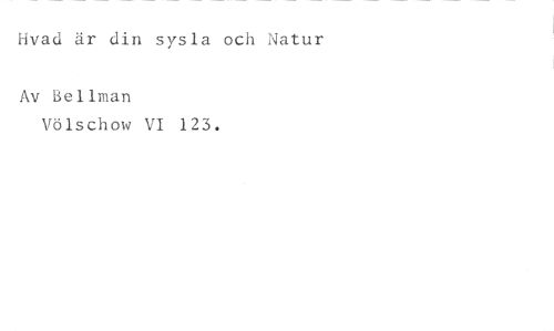 Hvad är din sysla och Natur //// Av Bellman //// Völschow VI 123.