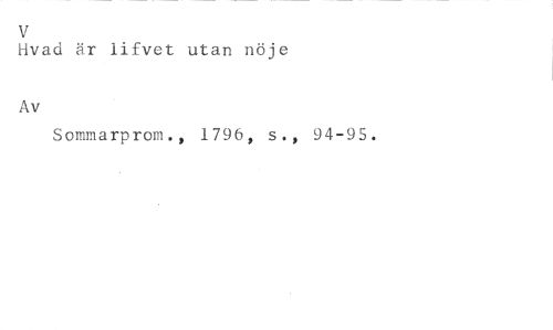 Hvad är lifvet utan nöje //// Av //// Sommarprom., 1796, s., 94-95.