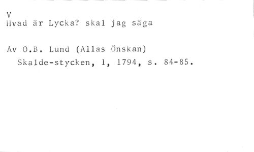 V //// Elvad är Lycka? skal jag säga //// Av 0.B. Lund (Allas Önskan) //// Skalde-stycken, 1, 1794, s. 84-85.