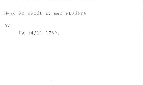 Hwad är wärdt at mer studera //// Av //// DA 14/11 1769.