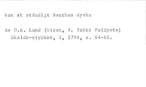 Wan at ständigt Bacchus dyrka //// Av O.B. Lund (Wisan, 9. Tobbi Fulipots) Skalde-stycken, 1, 1794, s. 64-65.