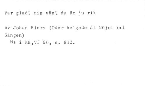 Var glad! min vänt du är ju rik //// Av Johan Elers (Oder helgade åt Nöjet och Sången) //// Us i KB,Vf 96, s. 912.
