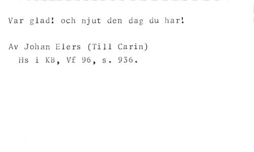 Var glad: och njut den dag du har: //// Av Johan Elers (Till Carin) tis i KB, Vf 96, s. 936.